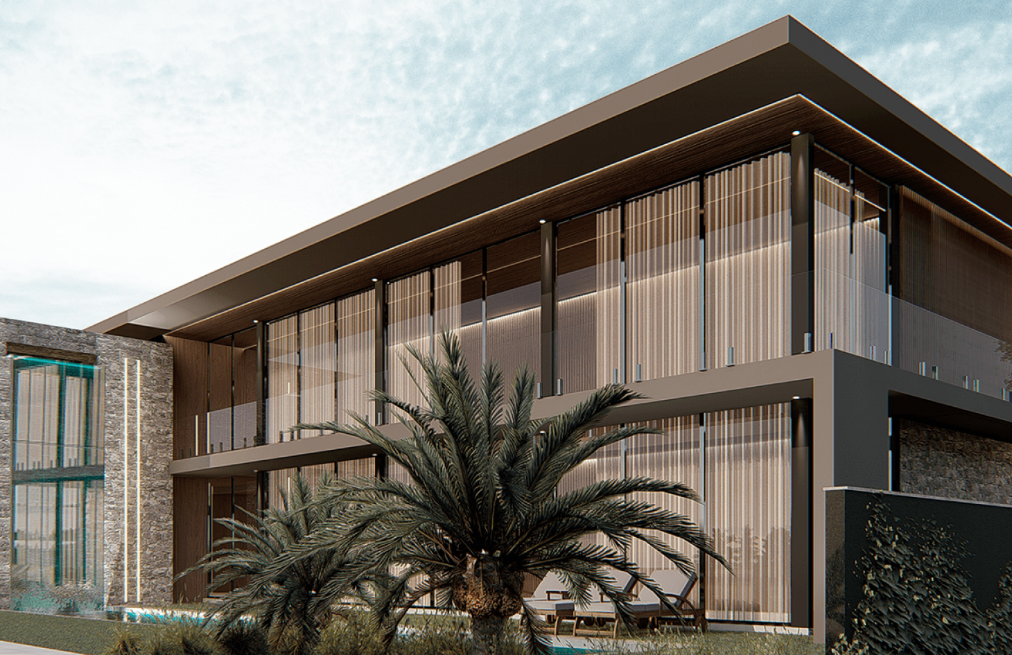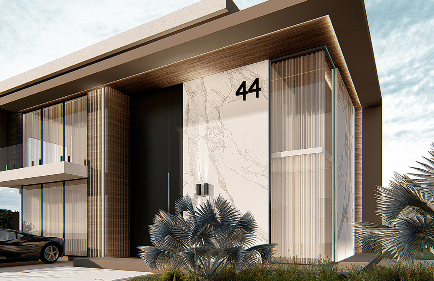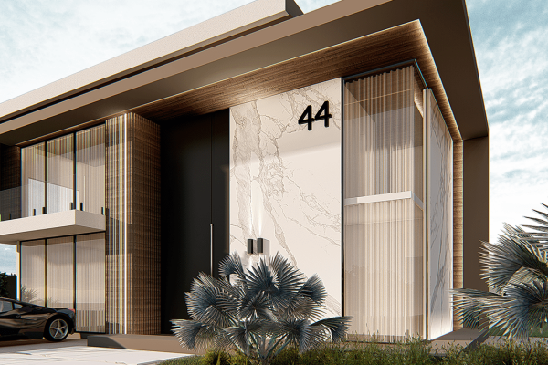 Uma proposta moderna e com muita personalidade, materiais em cores sóbrias e linhas retas definem a fachada e volumetria dessa casa.